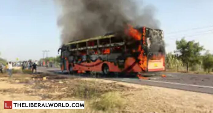 A moving AC sleeper bus caught fire on the Jaisalmer-Jodhpur Highway in Jaisalmer, Rajasthan, at 3:30 pm on Tuesday. The fire quickly escalated, and people jumped from the moving bus to escape. Sixteen people, including three children and four women, were burned in the accident. Three ambulances took the injured passengers to Jaisalmer’s Jawahar Hospital.