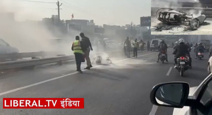 दिल्ली-गुडग़ांव हाईवे पर स्कूटी में लगी आग.. देखते ही रह गए लोग