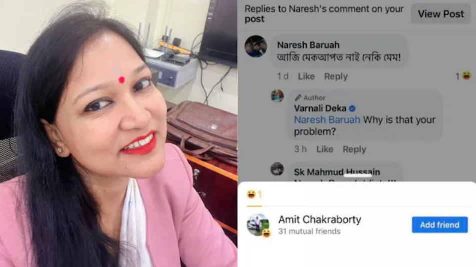 In a controversial case, a man from Assam’s Dhekiajuli, Amit Chakraborty, was compelled to travel 200 km to secure bail after IAS officer Varnali Deka filed a complaint against him for reacting to a comment on her Facebook post. The case, which has sparked debates over online interactions and legal overreach, also named two other accused, Naresh Barua and Abdul Subur Choudhary, for allegedly making derogatory remarks.