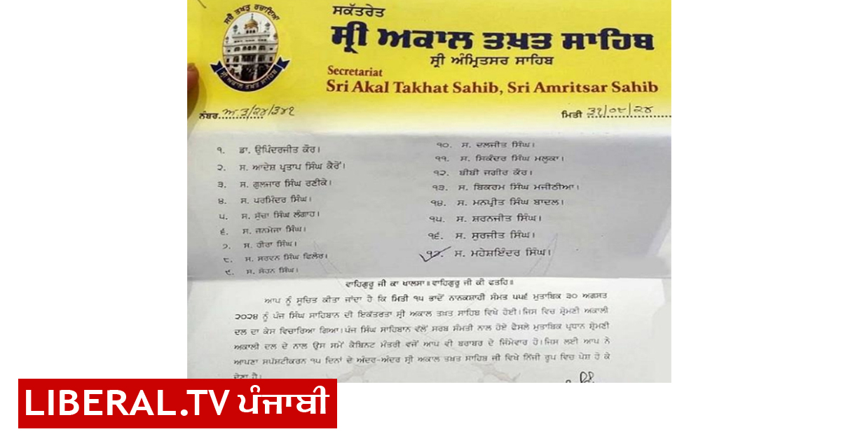 ਅੰਮਿ੍ਤਸਰ/ਬਿਊਰੋ ਨਿਊਜ਼ : ਪੰਜਾਬ ਵਿਚ ਅਕਾਲੀ ਦਲ ਦੀ ਸਰਕਾਰ ਸਮੇਂ ਦੇ 17 ਸਾਬਕਾ ਮੰਤਰੀਆਂ ਤੋਂ ਸ੍ਰੀ ਅਕਾਲ ਤਖਤ ਸਾਹਿਬ ਨੇ ਸਪੱਸ਼ਟੀਕਰਨ ਮੰਗਿਆ ਹੈ। ਇਸ ਨੂੰ ਲੈ ਕੇ ਸ੍ਰੀ ਅਕਾਲ ਤਖਤ ਸਾਹਿਬ ਵਲੋਂ ਇਕ ਚਿੱਠੀ ਜਨਤਕ ਕਰ ਦਿੱਤੀ ਗਈ ਹੈ। ਜਿਸ ਵਿਚ ਅਕਾਲੀ ਸਰਕਾਰ ਦੇ ਕਾਰਜਕਾਲ ਦੌਰਾਨ ਮੰਤਰੀ ਰਹੇ 17 ਵਿਅਕਤੀਆਂ ਕੋਲੋਂ ਸਪੱਸ਼ਟੀਕਰਨ ਮੰਗਿਆ ਗਿਆ ਹੈ।