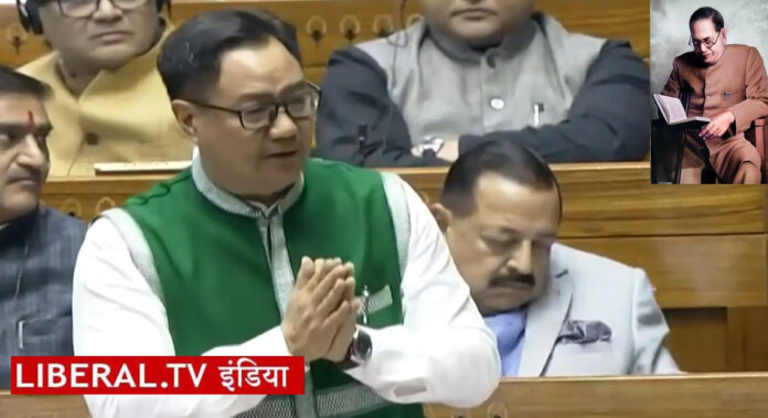 संविधान पर चर्चा के दौरान केंद्रीय मंत्री किरण रिजिजू ने लोकसभा में कांग्रेस पर सवाल उठाए। उन्होंने आंबेडकर के नेहरू को लिखे पत्र का हवाला देते हुए उनके इस्तीफे के कारणों पर प्रकाश डाला और 1990 से पहले भारतरत्न न दिए जाने पर प्रश्न किया। कांग्रेस ने हमेशा बाबा साहेब का अपमान किया। हमने मुंबई में 430 फीट ऊंची प्रतिमा बनाई।