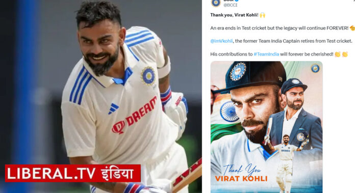भारतीय क्रिकेट कंट्रोल बोर्ड (बीसीसीआई) ने ट्वीट किया कि टेस्ट क्रिकेट में एक युग का अंत हो गया लेकिन विरासत हमेशा जारी रहेगी। टीम इंडिया के पूर्व कप्तान विराट कोहली ने टेस्ट क्रिकेट से संन्यास ले लिया है। टीम इंडिया में उनके योगदान को हमेशा याद रखा जाएगा। भारतीय क्रिकेट कंट्रोल बोर्ड ने आज दोपहर विराट कोहली के टेस्ट क्रिकेट से संन्यास की घोषणा की पुष्टि करते हुए एक भावुक ट्वीट किया। बीसीसीआई ने अपने आधिकारिक ट्विटर हैंडल पर लिखा, “टेस्ट क्रिकेट में एक युग का अंत, लेकिन विरासत हमेशा जीवित रहेगी! पूर्व टीम इंडिया के कप्तान ने टेस्ट क्रिकेट से अपने बूट टांग लिए हैं। टीम इंडिया के लिए उनकी सेवा हमेशा याद रखी जाएगी!