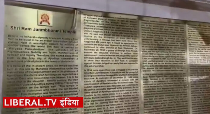 भगवान श्रीराम की नगरी अयोध्या में बन रहे भव्य राम जन्मभूमि मंदिर में राम जन्मभूमि आंदोलन के गौरवशाली इतिहास को दर्शाने के लिए पीतल की विशेष प्लेटें लगाई गई हैं। ये प्लेटें मंदिर परिसर के महत्वपूर्ण स्थानों पर स्थापित की जा रही हैं, ताकि आने वाली पीढिय़ां इस ऐतिहासिक संघर्ष और भगवान राम के जन्मस्थान के महत्व को जान सकें। प्रत्येक पीतल की प्लेट पर आंदोलन के विभिन्न महत्वपूर्ण चरणों, प्रमुख घटनाओं और इसमें शामिल रहे महत्वपूर्ण व्यक्तियों का संक्षिप्त विवरण उत्कीर्ण किया गया है। इन प्लेटों में 1980 के दशक में शुरू हुए आंदोलन से लेकर 1992 में विवादित ढांचे के विध्वंस और अंतत: सर्वोच्च न्यायालय के ऐतिहासिक फैसले तक की प्रमुख घटनाओं को कालक्रमानुसार दर्शाया गया है।