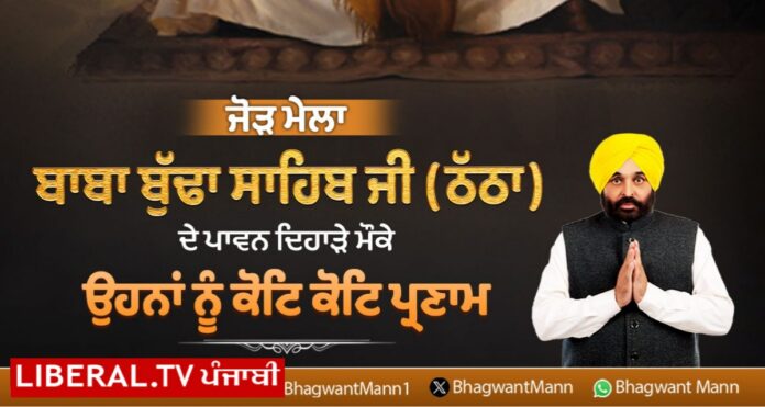 ਮੁੱਖ ਮੰਤਰੀ ਭਗਵੰਤ ਮਾਨ ਦੇ ਸੋਸ਼ਲ ਮੀਡੀਆ ਅਕਾਊਂਟ ਤੇ ਪੋਸਟ ਸਾਂਝੀ ਕੀਤੀ ਗਈ ਹੈ ਜਿਸ ਵਿਚ ਲਿਖਿਆ ਹੈ ਕਿ ਸਿੱਖ ਧਰਮ ਦੀ ਅਤਿ ਸਤਿਕਾਰਤ ਰੂਹਾਨੀ ਸ਼ਖ਼ਸੀਅਤ ਧੰਨ-ਧੰਨ ਬਾਬਾ ਬੁੱਢਾ ਸਾਹਿਬ ਜੀ ਦੀ ਯਾਦ ਨੂੰ ਸਮਰਪਿਤ ਸਾਲਾਨਾ ਜੋੜ ਮੇਲਾ ਬੀੜ ਬਾਬਾ ਬੁੱਢਾ ਜੀ (ਠੱਠਾ) ਦੇ ਪਾਵਨ ਦਿਹਾੜੇ ਮੌਕੇ ਨਤਮਸਤਕ ਹੋਣ ਪਹੁੰਚੀਆਂ ਸਮੂਹ ਸੰਗਤਾਂ ਨੂੰ ਲੱਖ-ਲੱਖ ਵਧਾਈਆਂ ਅਤੇ ਬਾਬਾ ਬੁੱਢਾ ਸਾਹਿਬ ਜੀ ਦੇ ਚਰਨਾਂ ‘ਚ ਕੋਟਿ ਕੋਟਿ ਪ੍ਰਣਾਮ।