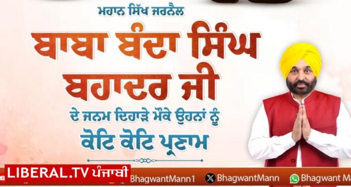 ਬਾਬਾ ਬੰਦਾ ਸਿੰਘ ਬਹਾਦਰ ਤੇ ਜਨਮ ਦਿਹਾੜੇ ਮੌਕੇ ਮੁੱਖ ਮੰਤਰੀ ਭਗਵੰਤ ਮਾਨ ਨੇ ਸਾਂਝੀ ਕੀਤੀ ਪੋਸਟ