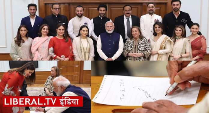 राज कपूर के परिवार के सदस्यों ने दिल्ली में प्रधानमंत्री नरेन्द्र मोदी से मुलाकात की और उनके साथ लंबा वक्त बिताया। इस दौरान रणबीर कपूर, करीना कपूर खान, सैफ अली खान और आलिया भट्ट कपूर ने मोदी को राज कपूर फिल्म महोत्सव में आने का निमंत्रण दिया। फिल्ममेकर एवं एक्टर राज कपूर की 14 दिसंबर को 100वीं जयंती मनाई जाएगी। प्रधानमंत्री नरेन्द्र मोदी ने कहा कि राज कपूर का शताब्दी वर्ष भारतीय सिनेमा के लिए स्वर्णिम युग का प्रतीक है। राज कपूर के परिवार को उनकी अंतरराष्ट्रीय सॉफ्ट पावर पर एक डॉक्यूमेंट्री बनाकर विरासत को आगे बढ़ाना चाहिए। राज कपूर को भारतीय सिनेमा के सबसे महान शोमैन के रूप में जाना जाता है। उनकी फिल्में और गीत देश ही नहीं विदेश में भी मशहूर रहे हैं। चीन हो या मिडिल ईस्ट, सब जगह उनके चाहने वाले हैं। मोदी ने इस दौरान अटल-आडवाणी का किस्सा भी सुनाया।