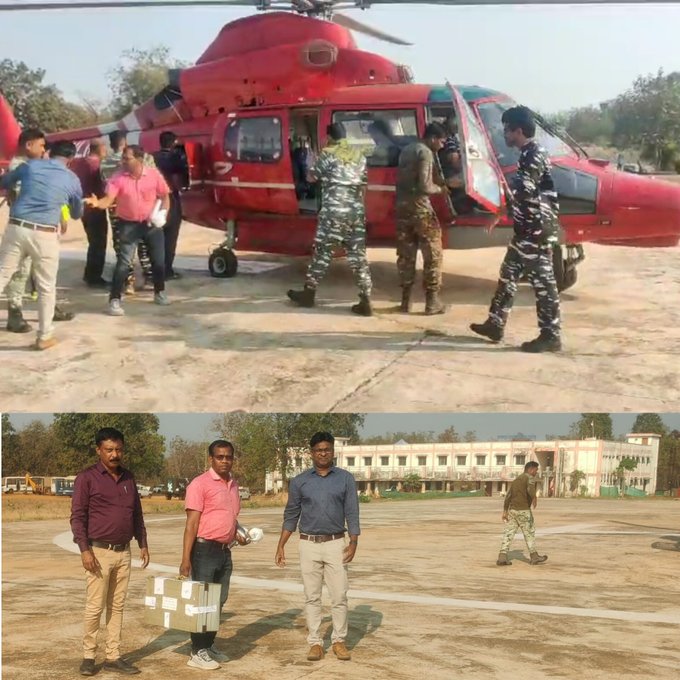 According to the Chief Minister’s Office of Chhattisgarh, question papers were transported to an exam center via helicopter in a remote tribal village.