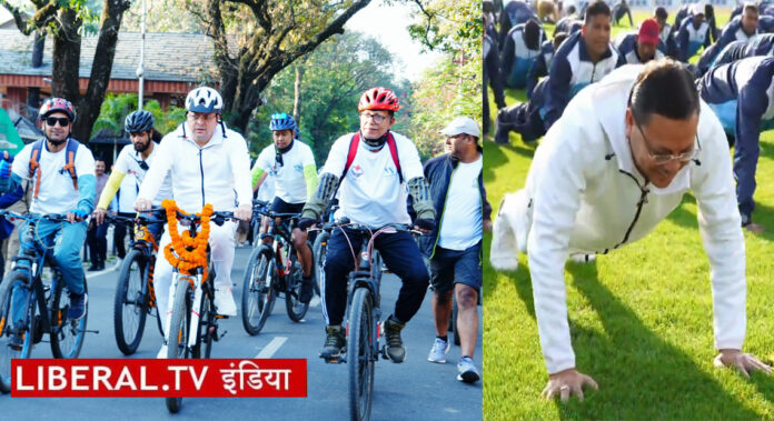 उत्तराखंड के मुख्यमंत्री पुष्कर सिंह धामी रायपुर के महाराणा प्रताप स्पोट्र्स कॉलेज के एथलेटिक्स ग्राउंड (गंगा कॉम्प्लेक्स) में फिट इंडिया रन में शामिल हुए। उन्होंने अन्य प्रतिभागियों के साथ पुश-अप्स किए। यह रन उनकी सरकार के तीन वर्ष पूरे होने के अवसर पर रायपुर स्थित महाराणा प्रताप स्पोट्र्स कॉलेज के एथलेटिक्स ग्राउंड से हरी झंडी दिखाकर रवाना किया। मुख्यमंत्री पुष्कर सिंह धामी ने कहा कि सबसे पहले मैं उत्तराखंड की जनता को नमन करता हूं। आने वाले समय में हमें बहुत सी चुनौतियों पर काम करना है। आज देवभूमि उत्तराखंड को एक गौरव प्राप्त हुआ कि देवभूमि उत्तराखंड समान नागरिक संहिता (यूसीसी) को लागू करने वाला देश का पहला राज्य है।