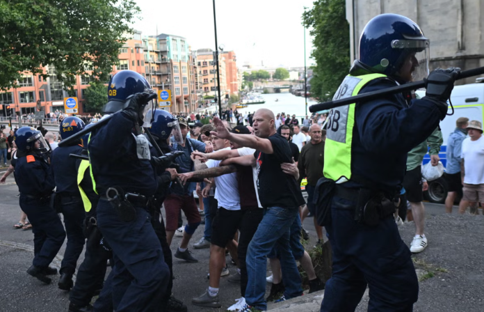 Riots first flared in Southport late Tuesday following Monday’s frenzied knife attack at a Taylor Swift-themed dance party in the northwest coastal city, before spreading up and down England. They were fueled by false rumours on social media about the background of British-born 17-year-old suspect Axel Rudakubana, who is accused of killing a six, seven, and nine-year-old, and injuring another ten people.