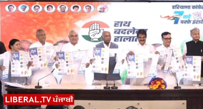ਹਰਿਆਣਾ ਵਿਧਾਨ ਸਭਾ ਚੋਣਾਂ ਦੇ ਲਈ ਕਾਂਗਰਸ ਵੱਲੋਂ ਆਪਣਾ ਚੋਣ ਮੈਨੀਫੈਸਟੋ ਜਾਰੀ