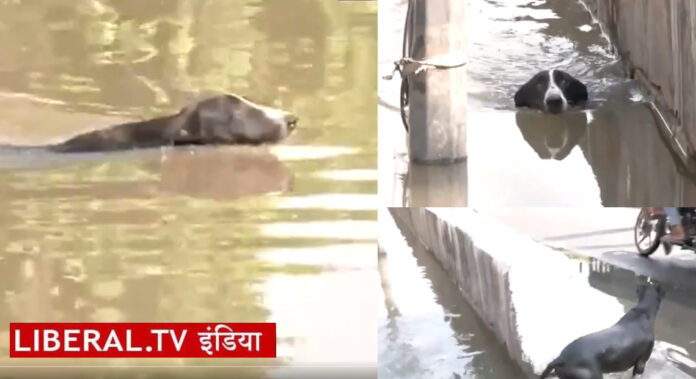 दिल्ली की सडक़ें बन गईं तालाब.. कुत्ते को भी तैरकर करना पड़ा पार