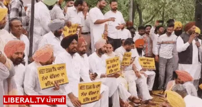 NEET ਪ੍ਰੀਖਿਆ ਵਿੱਚ ਧਾਂਦਲੀ ਨੂੰ ਲੈ ਕੇ ਜਲੰਧਰ ਵਿੱਚ ਆਪ ਦੇ ਆਗੂਆਂ ਵੱਲੋਂ ਪ੍ਰਦਰਸ਼ਨ