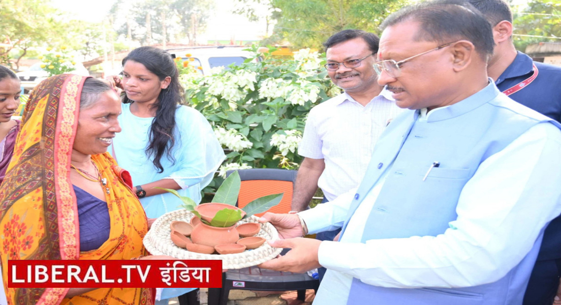 मुख्यमंत्री विष्णु देव साय ने तिलासो बाई से मिट्टी के दीये और कलश खरीदे, हितग्राहियों ने सुख- समृद्धि की कामना के साथ धान की बालियां उपहार स्वरूप भेंट की