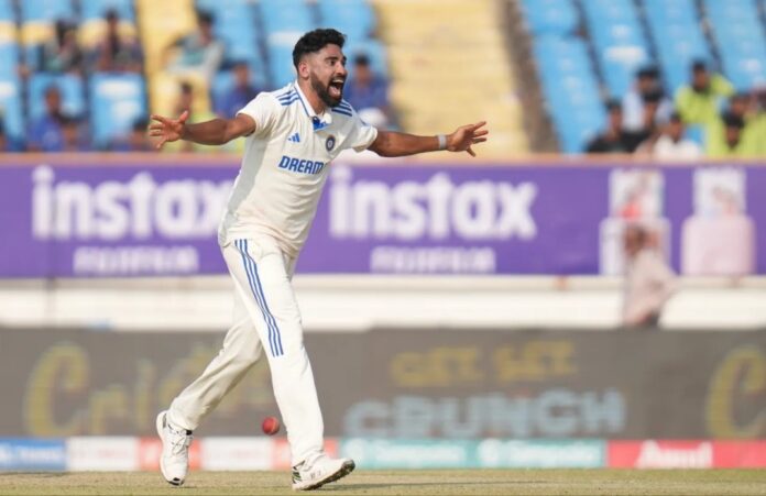 भारत और इंग्लैंड की टीम के बीच राजकोट के मैदान पर तीसरा टेस्ट मैच खेला जा रहा है। आज तीसरे टेस्ट मैच का तीसरा दिन का खेल जारी है और इंग्लैंड की पहली पारी भारत के 435 रनों के जवाब में 319 रनों पर सिमट गई है। भारतीय टीम की ओर से मोहम्मद सिराज ने 84 रन लेकर चार विकेट हासिल किये।