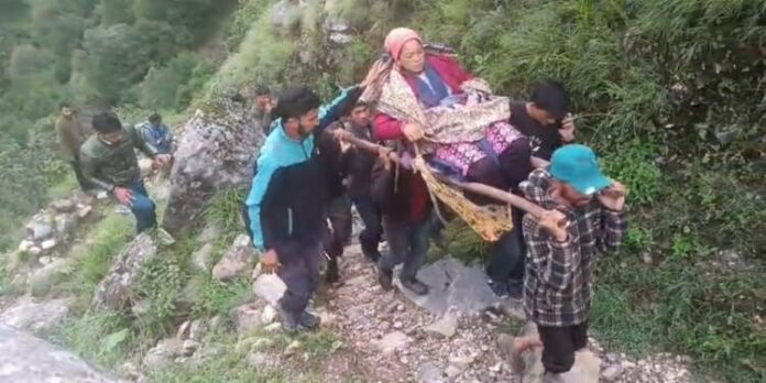 आजादी के 76 वर्षों के बाद भी पहाड़ के दुरस्त गांवों तक सड़क नही पहुंचने से आज भी प्रसूताओं, बीमार बुजुर्ग महिलाओं एवं पुरुषों का सहारा आज भी पारंपरिक तरीका डंडीयां ही बनी हुई हैं।ऐसा ही एक वाकया फिर से देखने को मिला जहां पर एक प्रसूता युवती की प्रसव के बाद करीब 5-6 दिन बाद अचानक तबीयत खराब होने पर ग्रामीण तीन किलोमीटर डंडी के सहारे मोटर सड़क तक लाएं उसके बाद उसे अस्पताल तक लेजाया गया जहां उसका उपचार शुरू किया गया है। यह मामला विकास खंड देवाल के अंतर्गत यातायात से वंचित सुदूरवर्ती गांव बलाण की एक 22 वर्षीय युवती अनीशा पत्नी भुपाल सिंह का 5-6 दिन पूर्व गांव में ही प्रसव हुआ था, प्रसव के बाद से ही युवती का स्वास्थ्य खराब होने लगा था,परन्तु रविवार की देर रात उसका स्वास्थ्य अधिक बिगड़ गया और वह चलने फिरने तक में असमर्थ हो गई जिस पर ग्रामीणों ने युवती को अस्पताल ले जाने का निर्माण लिया और आनन-फानन में सोमवार की तड़के एक फोल्डिंग कुर्सी में दो डंडे बाध कर एक डंडी तैयार की और उसमें बीमार युवती को बिठा कर उबड़-खाबड़ रास्ते से चलते हुए गांव से करीब 3 किलोमीटर दूर तक 18-20 ग्रामीणों ने कड़ी मशक्कत से कालीताल नामक स्थान जहां तक सड़क निर्मित हैं पहुंचाया।