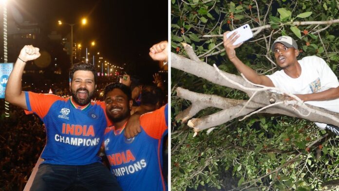 वर्ल्ड चैंपियन टीम इंडिया की विक्ट्री परेड इस वक्त सोशल मीडिया में चर्चा का विषय बनी हुई है। क्योंकि जिस अंदाज में फैन्स भारतीय टीम को देखने आए हैं वो एक तरह से यह बताता है कि भारत देश में क्रिकेट को लेकर फैंस में कितना जुनून भरा हुआ है। और इसका एक वाकया तब देखने मिला जब भारतीय टीम को देखने के लिए एक फैन पेड़ पर चढ़ गया।