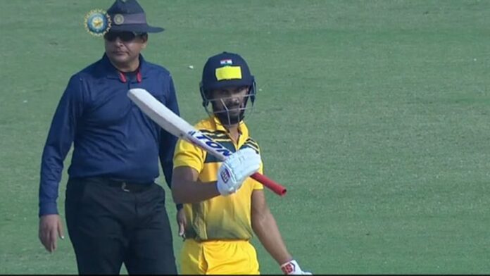 भारत के घरेलू टूर्नामेंट विजय हजारे ट्रॉफी में महाराष्ट्र और सर्विसेज की टीम के बीच खेले गए मुकाबले में महाराष्ट्र की टीम के कप्तान ऋतुराज गायकवाड़ ने तूफानी अंदाज में शतक जड़ दिया है। ऋतुराज गायकवाड़ ने 148 रनों की शानदार पारी खेली है जिसमें 16 चौके और 11 छक्के शामिल रहे हैं। ऋतुराज गायकवाड़ ने सिर्फ 74 गेंद का सामना करते हुए 148 रन बनाए हैं और एक तरह से आईसीसी चैंपियंस ट्रॉफी के लिए अपनी दावेदारी भी ठोक दी है।