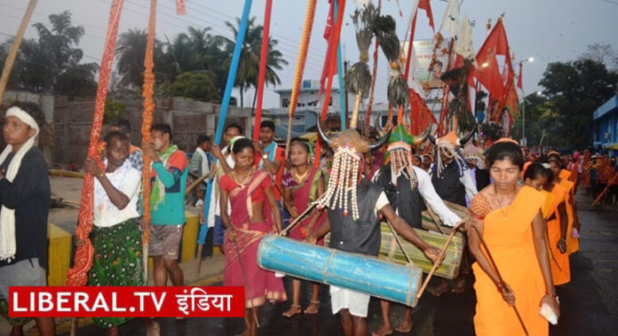 छत्तीसगढ़ के दंतेवाड़ा में होली के अवसर पर आठवें दिन फागुन मड़ई में ‘गंवर मार’ नृत्य अनुष्ठान का आयोजन किया गया। इस अवसर पर आदिवासियों ने वाद्ययंत्रों के साथ नाचते-गाते उत्सव मनाया। कुछ लोग सिर पर जानवरों के सींग लगाए हुए नृत्य कर रहे थे। दरअसल फागुन मड़ई के सातें दिन ‘गंवर मार’ की रस्म होती है। परंपरा है कि रात्रि के अंतिम पहर में गंवर शिकार का प्रदर्शन किया जाता है। यह शिकार नृत्य ‘गंवर मार’ सबसे लोकप्रिय है। बस्तर में पाए जाने वाले दुर्लभ वन भैंसा (गौर) को स्थानीय बोली में गंवर कहा जाता है।