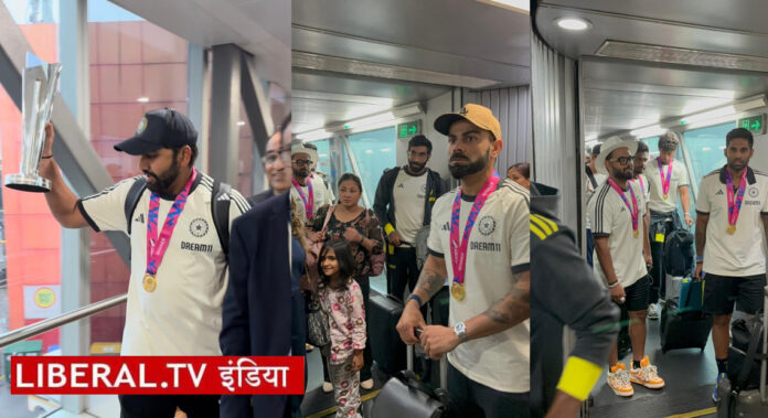 पुरुष भारतीय क्रिकेट टीम आईसीसी टी 20 विश्व कप जीतने के बाद ट्रॉफी लेकर दिल्ली एयरपोर्ट पर उतरी। भारत ने 29 जून को बारबाडोस में दक्षिण अफ्रीका को 7 रन से हराकर अपना दूसरा टी20 खिताब जीता था, लेकिन मौसम खराब होने के कारण टीम वहां फंस गई। आज सुबह कप्तान रोहित शर्मा, टीम इंडिया के कोच राहुल द्रविड़, युजवेंद्र चहल और जसप्रीत बुमराह, विराट कोहली, सूर्यकुमार यादव और शिवम दुबे समेत सभी खिलाड़ी दिल्ली एयरपोर्ट पहुंचे।