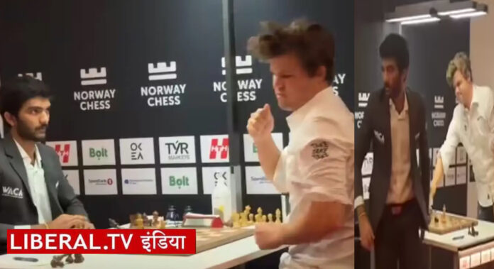 भारतीय शतरंज के युवा सनसनी डी. गुकेश ने नॉर्वे शतरंज 2025 टूर्नामेंट में एक ऐतिहासिक जीत दर्ज करते हुए पांच बार के विश्व चैंपियन मैग्नस कार्लसन को क्लासिकल शतरंज के मुकाबले में पहली बार धूल चटाई। इस अप्रत्याशित हार से कार्लसन इतने बौखला गए कि उन्होंने मैच खत्म होने के बाद गुस्से में बोर्ड पर मुक्का मारा, जिससे चेस के मोहरे बिखर गए।
