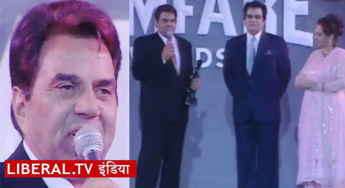 जब उन्हें लाइफटाइम अचीवमेंट अवार्ड दिया गया, तब मंच पर उनके आदर्श और महान अभिनेता दिलीप कुमार मौजूद थे। दिलीप कुमार ने धर्मेंद्र को गले लगाया और कहा, “यह अवार्ड आपको बहुत पहले मिल जाना चाहिए था… मैं यह अवार्ड आपके दिल का सारा मलाल दूर करने के लिए आपको सौंपता हूँ।”