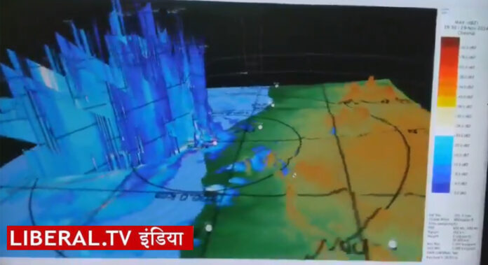 चेन्नई के रडार में चक्रवात फेंगल के बादलों का थ्री डाइमेंशनल वीडियो जारी हुआ है। भारतीय मौसम विज्ञान विभाग आईएमडी के मुताबिक चक्रवात फेंगल के प्रभाव के कारण कई तटीय क्षेत्रों में उच्च ज्वार और बारिश के साथ मौसम में बदलाव देखा गया है। चक्रवात फेंगल आज दोपहर तक तमिलनाडु-पुडुचेरी के तटीय क्षेत्र से टकराएगा।
