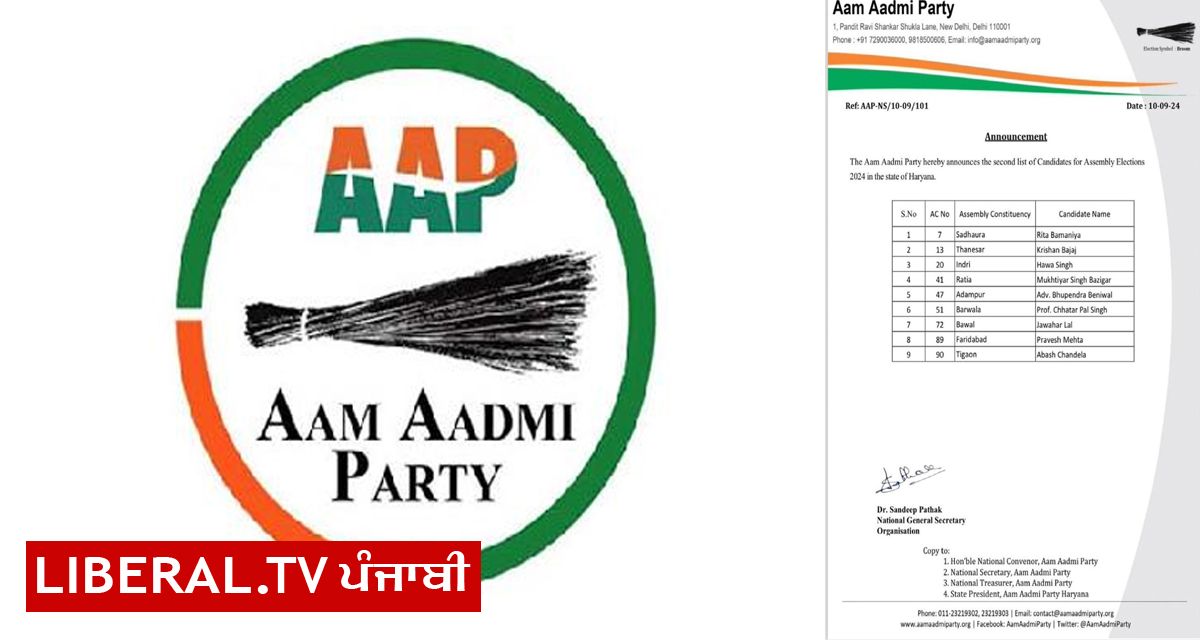 ਚੰਡੀਗੜ੍ਹ/ਬਿਊਰੋ ਨਿਊਜ਼ : ਹਰਿਆਣਾ ਵਿਚ ਵਿਧਾਨ ਸਭਾ ਚੋਣਾਂ ਲਈ 5 ਅਕਤੂਬਰ ਨੂੰ ਵੋਟਾਂ ਪੈਣੀਆਂ ਹਨ ਅਤੇ ਕਾਂਗਰਸ ਤੇ ਆਮ ਆਦਮੀ ਪਾਰਟੀ ਵਿਚਾਲੇ ਚੋਣ ਗਠਜੋੜ ਦੀਆਂ ਸੰਭਾਵਨਾਵਾਂ ਮੱਧਮ ਹੀ ਜਾਪ ਰਹੀਆਂ ਹਨ। ਇਸਦੇ ਚੱਲਦਿਆਂ ਆਮ ਆਦਮੀ ਪਾਰਟੀ ਨੇ ਅੱਜ ਉਮੀਦਵਾਰਾਂ ਦੇ ਨਾਵਾਂ ਵਾਲੀ ਦੂਜੀ ਸੂਚੀ ਜਾਰੀ ਕਰ ਦਿੱਤੀ ਹੈ, ਜਿਸ ਵਿਚ 9 ਉਮੀਦਵਾਰਾਂ ਦੇ ਨਾਵਾਂ ਦਾ ਐਲਾਨ ਕੀਤਾ ਗਿਆ ਹੈ। ਇਸ ਤੋਂ ਪਹਿਲਾਂ ਲੰਘੇ ਕੱਲ੍ਹ ਆਮ ਆਦਮੀ ਪਾਰਟੀ ਨੇ 20 ਉਮੀਦਵਾਰਾਂ ਦੇ ਨਾਵਾਂ ਵਾਲੀ ਪਹਿਲੀ ਸੂਚੀ ਜਾਰੀ ਕੀਤੀ ਸੀ।