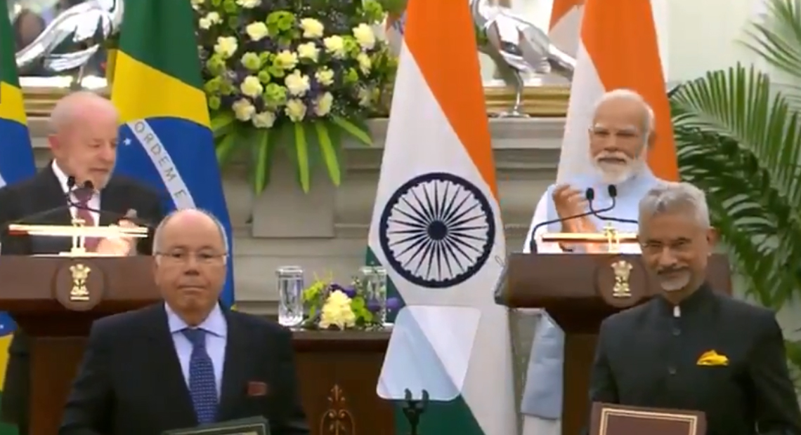 नई दिल्ली के हैदराबाद हाउस में प्रधानमंत्री नरेंद्र मोदी और ब्राजील के राष्ट्रपति लुइज़ इनासियो लूला डा सिल्वा के बीच एक महत्वपूर्ण द्विपक्षीय वार्ता हुई। इस बैठक के दौरान भारत और ब्राजील ने अपने रणनीतिक संबंधों को नई ऊंचाई देते हुए कई महत्वपूर्ण समझौतों (MoUs) पर हस्ताक्षर किए।