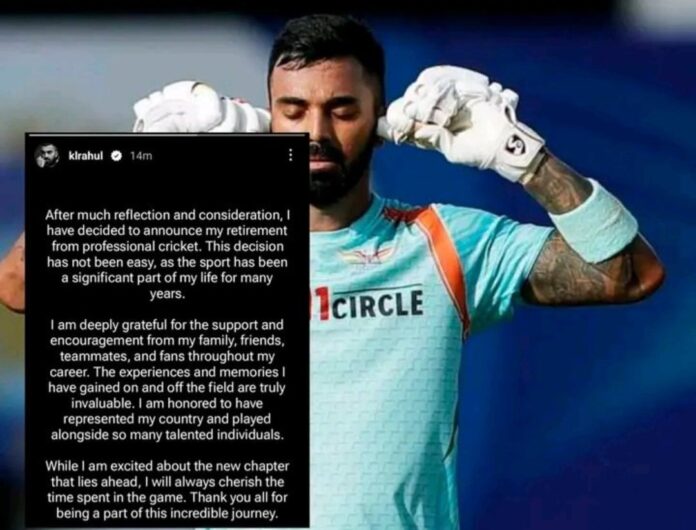 भारतीय टीम के मध्यक्रम के स्टार बल्लेबाज केएल राहुल ने थोड़ी देर पहले अपने आधिकारिक इंस्टाग्राम अकाउंट से एक स्टोरी शेयर करते हुए सभी को हैरान कर दिया है। दरअसल केएल राहुल ने अपने आधिकारिक इंस्टाग्राम अकाउंट से एक स्टोरी शेयर की और उसमें अपने रिटायरमेंट का ऐलान किया। लेकिन उससे भी ज्यादा हैरानी की बात तब हुई तब थोड़ी देर के बाद केएल राहुल ने उस स्टोरी को डिलीट कर दिया लेकिन तब तक तो सोशल मीडिया पर सब कुछ वायरल हो चुका था।