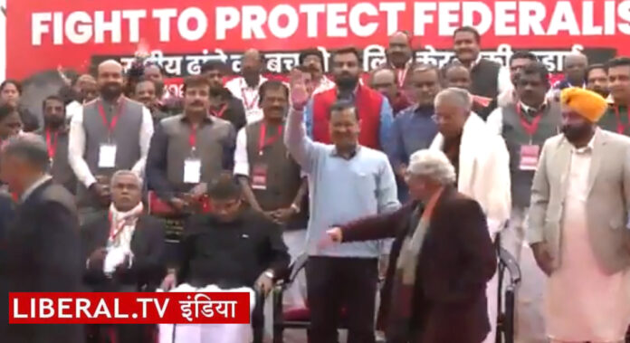 दिल्ली के मुख्यमंत्री अरविंद केजरीवाल ने कहा कि केंद्र सरकार सारे विपक्ष को प्रताडि़त करने के लिए सारे हथकंडे अपना रही है। केंद्र सरकार विपक्ष की सरकारों को जायज फंड नहीं दे रही है जो उनका हक है। उपराज्यपाल और राज्यपाल के जरिए उनके कार्य में रोज टांग अड़ाती है और विपक्ष को पकड़ा जा रहा है और जेल भेजा रहा है। उन्होंने कहा कि अगर केरल के लोगों को उनके हक का फंड नहीं मिलेगा तो काम और सरकार कैसे चलेगी? हम सब अपनी जनता के हक के लिए फंड लेने आए हुए हैं। हमें फंड नहीं मिलेगा तो हम विकास कैसे करेंगे। इस अवसर पर सीएम भगवंत मान ने भी केंद्र की मोदी सरकार को कठघरे में खड़ा किया और विपक्षी दलों की सरकारों को परेशान करने का आरोप लगाया।
