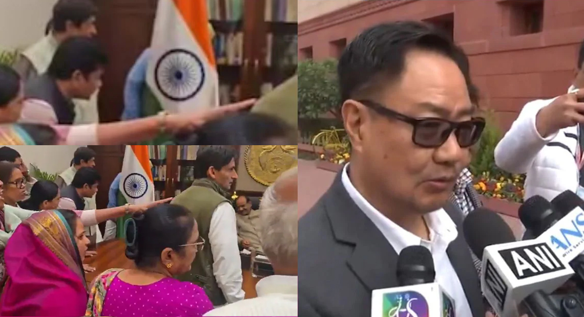 किरेन रिजिजू ने आरोप लगाया कि कांग्रेस के 20 से 25 सांसद जबरन लोकसभा स्पीकर ओम बिरला के चैंबर में घुस गए।