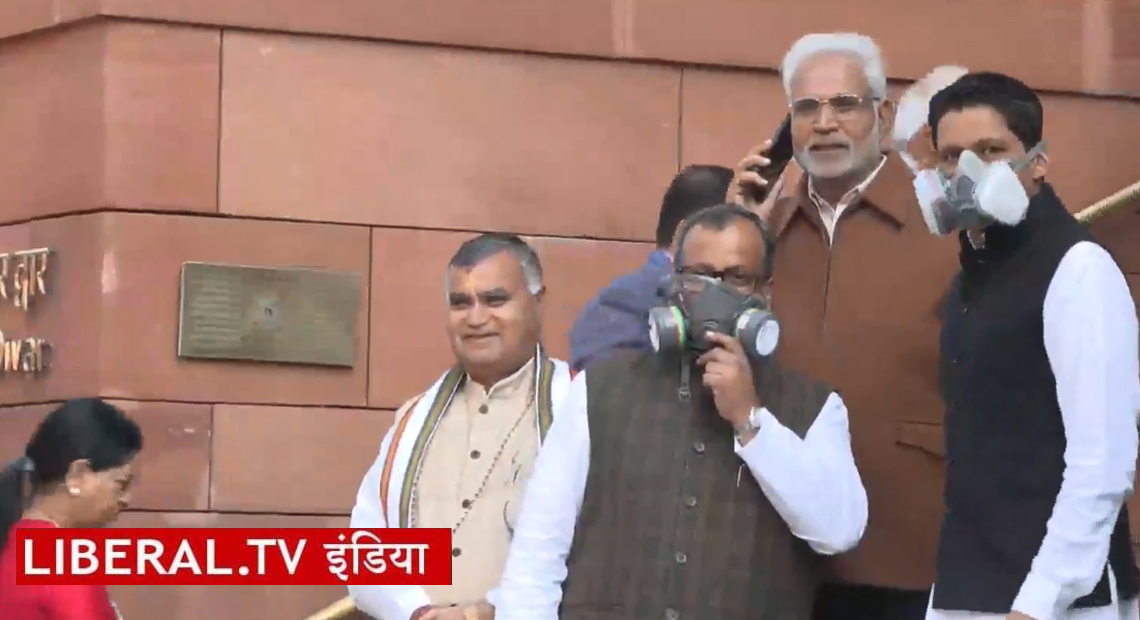 ‘गैस मास्क’ पहनकर पहुंचे विपक्षी सांसद; सदन में वायु प्रदूषण पर चर्चा की मांग