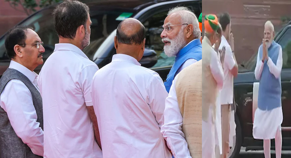 मुस्कुराकर और हाथ जोड़कर किया अभिवादन, संसद परिसर में मिले PM मोदी और राहुल गांधी