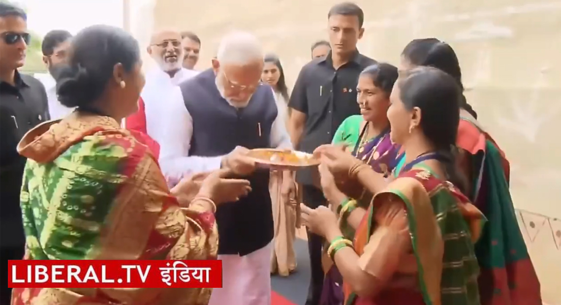 प्रधानमंत्री नरेंद्र मोदी जलगांव में लखपति दीदी सम्मेलन के दौरान 11 लाख लखपति दीदियों को प्रमाण पत्र सौंपेंगे। जब मोदी कार्यक्रम में पहुंचे तो महिलाओं ने स्वागत किया और फूल बरसाए। इस दौरान महिलाओं ने आरती उतारनी चाही तो मोदी ने उनके हाथ था थाली लेकर महिलाओं की ही आरती उतारी। यह देखकर महिलाएं भी गदगद नजर आईं।