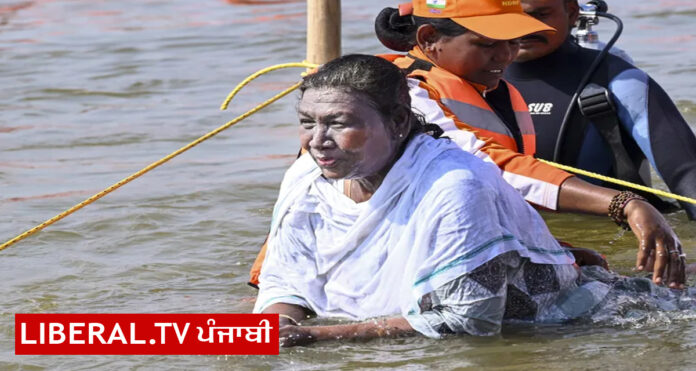 ਪ੍ਰਯਾਗਰਾਜ/ਬਿਊਰੋ ਨਿਊਜ਼ : ਰਾਸ਼ਟਰਪਤੀ ਦਰੋਪਦੀ ਮੁਰਮੂ ਨੇ ਅੱਜ ਸੋਮਵਾਰ ਨੂੰ ਮਹਾਂਕੁੰਭ ਮੇਲੇ ਦੌਰਾਨ ਤਿ੍ਵੇਣੀ ਦੇ ਸੰਗਮ ਉੱਤੇ ਆਸਥਾ ਦੀ ਡੁਬਕੀ ਲਾਈ। ਇਸ ਦੌਰਾਨ ਘਾਟ ’ਤੇ ਸਖ਼ਤ ਸੁਰੱਖਿਆ ਪ੍ਰਬੰਧ ਕੀਤੇ ਗਏ ਸਨ। ਇਸ ਤੋਂ ਪਹਿਲਾਂ ਪ੍ਰਯਾਗਰਾਜ ਹਵਾਈ ਅੱਡੇ ਉੱਤੇ ਪੁੱਜੀ ਰਾਸ਼ਟਰਪਤੀ ਮੁਰਮੂ ਦਾ ਯੂਪੀ ਦੀ ਰਾਜਪਾਲ ਆਨੰਦੀਬੇਨ ਪਟੇਲ ਤੇ ਸੂਬੇ ਦੇ ਮੁੱਖ ਮੰਤਰੀ ਯੋਗੀ ਆਦਿੱਤਿਅਨਾਥ ਨੇ ਸਵਾਗਤ ਕੀਤਾ। ਮੁਰਮੂ ਨੇ ਤਿ੍ਵੇਣੀ ਦੇ ਸੰਗਮ ’ਤੇ ਪਰਵਾਸੀ ਪੰਛੀਆਂ ਨੂੰ ਚੋਗਾ ਵੀ ਪਾਇਆ।
