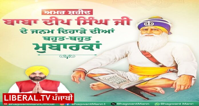 ਮੁੱਖ ਮੰਤਰੀ ਭਗਵੰਤ ਮਾਨ ਨੇ ਬਾਬਾ ਦੀਪ ਸਿੰਘ ਜੀ ਦੇ ਜਨਮ ਦਿਹਾੜੇ ‘ਤੇ ਦਿੱਤੀ ਸ਼ਰਧਾਂਜਲੀ