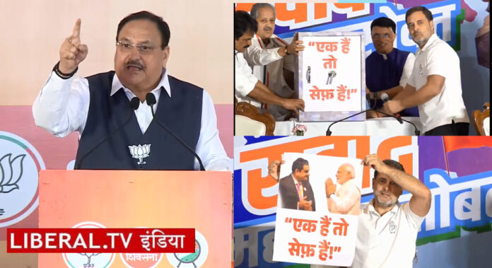 महाराष्ट्र विधानसभा चुनाव प्रचार का आज अंतिम दिन है। ऐसे में दोनों गठबंधनों के नेताओं ने पूरा जोर लगा दिया है। नवी मुंबई में सभा करते हुए भाजपा के राष्ट्रीय अध्यक्ष और केंद्रीय मंत्री जे.पी. नड्डा ने एमवीए से दो साल का हिसाब मांगा तो कांग्रेस नेता राहुल गांधी ने अडानी-मोदी का पोस्टर जारी करते हुए पूछा कि कौन सेफ है और किसका सेफ है।