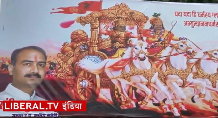 उत्तर प्रदेश में भारत जोड़ो न्याय यात्रा के आज कानपुर पहुंचने से पहले कांग्रेस कार्यकर्ताओं ने पोस्टर लगाए हैं। इन पोस्टरों मेंकांग्रेस सांसद राहुल गांधी को भगवान कृष्ण और यूपी कांग्रेस प्रमुख अजय राय को अर्जुन के रूप में दिखाया गया है। पोस्टर में धनुष-बाण लिए अजय राय और सारथी बने राहुल के चेहरे को दिखाया गया है। यह पोस्टर एड. संदीप शुक्ला ने लगवाया है जो प्रदेश कांग्रेस कमेटी के सदस्य हैं। अन्य पोस्टरों में सोनिया, प्रियंका गांधी वाड्रा, मल्लिकार्जुन खरगे समेत अन्य नेता भी हैं।