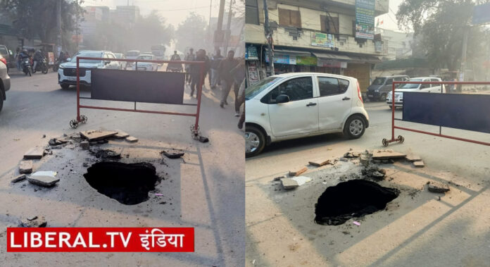 देश की राजधानी में धंस गई सड़क.. देखें ऐसा हुआ हाल
