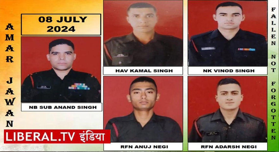 भारतीय सेना और पश्चिमी कमान ने 8 जुलाई को जम्मू के कठुआ सेक्टर में आतंकवाद के खिलाफ लड़ते हुए पांच सैनिकों की बहादुरी और सर्वोच्च बलिदान को सलाम किया। पश्चिमी कमान, भारतीय सेना ने कहा कि हम सेना कमांडर और सभी रैंक शोक संतप्त परिवारों के साथ एकजुटता में खड़े हैं। संयुक्त अभियान जारी है।