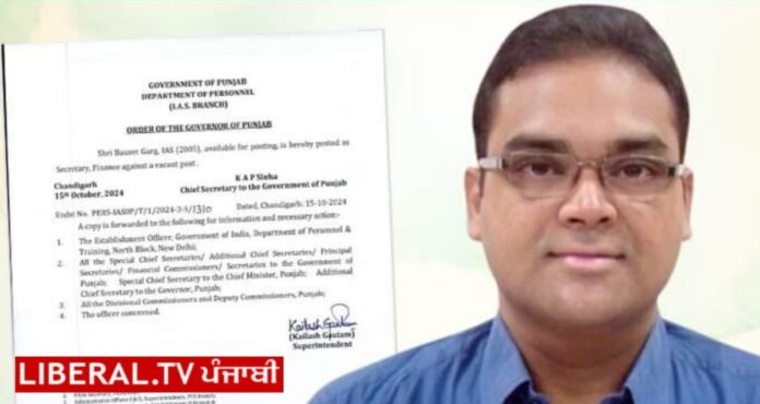 HomePunjabi NewsLiberal Breakingਸੀਨੀਅਰ IAS ਅਧਿਕਾਰੀ ਬਸੰਤ ਗਰਗ ਬਣੇ ਪੰਜਾਬ ਦੇ ਨਵੇਂ ਵਿੱਤ ਸਕੱਤਰ
