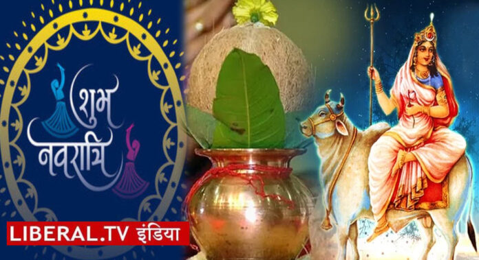 नवरात्रि के पहले दिन घटस्थापना में तांबे या मिट्टी के कलश में देवी दुर्गा का आह्वान किया जाता है। कलश को नौ दिन तक पूजा स्थल पर रखा जाता है। घटस्थापना के लिए गंगाजल, नारियल, लाल कपड़ा, मौली, रोली, चंदन, पान, सुपारी, धूपबत्ती, घी का दीपक, ताजे फल, फूल माला, बेलपत्रों की माला और एक थाली में साफ चावल की ज़रूरत होती है। वैदिक पंचांग के अनुसार घटस्थापन के लिए आज शुभ मुहूर्त है। घरों और पंडालों में सुबह 9.40 से 11.50 तक भगवती की पूजा कर सकते हैं।