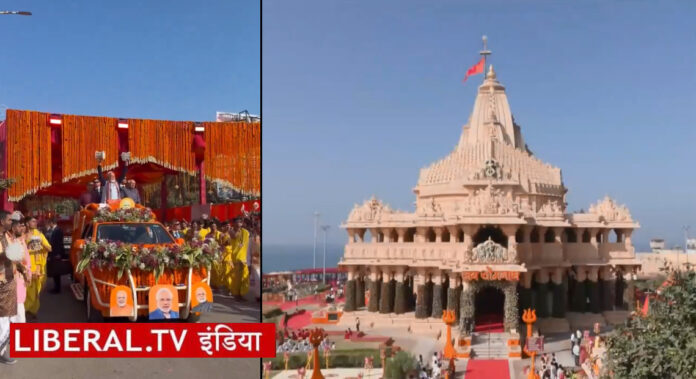 प्रधानमंत्री नरेंद्र मोदी ने आज गिर सोमनाथ में ‘सोमनाथ स्वाभिमान पर्व’ के अवसर पर भगवान सोमनाथ की विशेष पूजा-अर्चना की। मुख्यमंत्री भूपेंद्र पटेल और उपमुख्यमंत्री हर्ष सांघवी के साथ ‘शौर्य यात्रा’ में भाग लिया। यह यात्रा मंदिर की रक्षा करने वाले वीरों के बलिदान के सम्मान में निकाली गई। पीएम ने इस दौरान वीर हमीरजी गोहिल को भी श्रद्धांजलि दी।