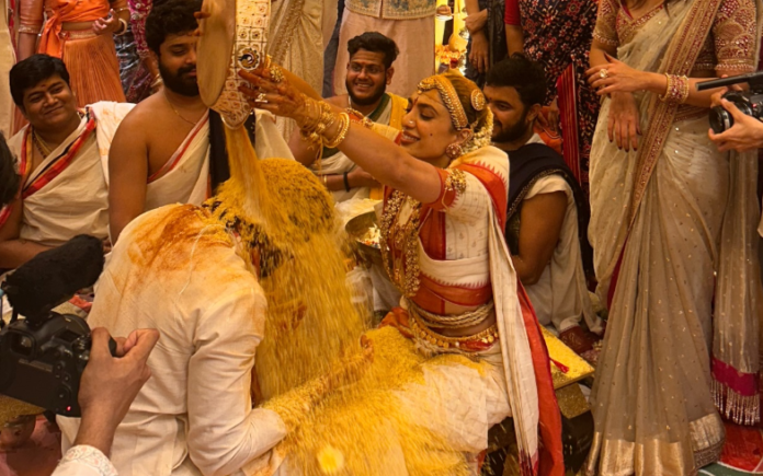 Hyderabad witnessed a star-studded celebration as actor Naga Chaitanya and actress Sobhita Dhulipala tied the knot on December 4 at the iconic Annapurna Studios. The couple’s wedding, dubbed the “SoChay” celebration by fans, was a vibrant traditional affair, marked by joy, rituals, and the presence of numerous celebrities.