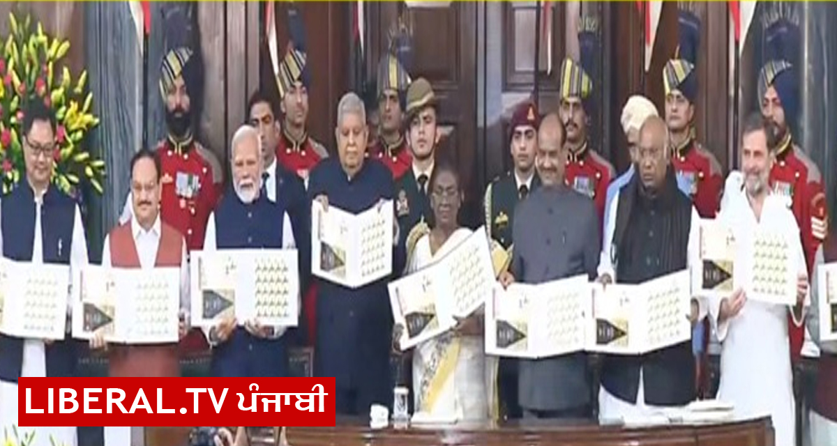 ਨਵੀਂ ਦਿੱਲੀ/ਬਿਊਰੋ ਨਿਊਜ਼ : ਅੱਜ ਮੰਗਲਵਾਰ ਨੂੰ ਸੰਵਿਧਾਨ ਦਿਵਸ ਦੇ ਮੌਕੇ ’ਤੇ ਰਾਸ਼ਟਰਪਤੀ ਦਰੋਪਦੀ ਮੁਰਮੂ ਨੇ ਸੰਸਦ ਦੇ ਸਾਂਝੇ ਸੈਸ਼ਨ ਨੂੰ ਸੰਬੋਧਨ ਕੀਤਾ। ਨਵੀਂ ਦਿੱਲੀ ਵਿਖੇ ਇਹ ਸਾਂਝਾ ਸੈਸ਼ਨ ਸੰਸਦ ਦੇ ਸੈਂਟਰਲ ਹਾਲ ਵਿਚ ਹੋਇਆ। ਇਸ ਦੌਰਾਨ ਰਾਸ਼ਟਰਪਤੀ ਮੁਰਮੂ ਨੇ ਸੰਵਿਧਾਨ ਦਿਵਸ ਦੇ ਮੌਕੇ ’ਤੇ ਇਕ ਵਿਸ਼ੇਸ਼ ਯਾਦਗਾਰੀ ਸਿੱਕਾ ਅਤੇ ਇਕ ਵਿਸ਼ੇਸ਼ ਡਾਕ ਟਿਕਟ ਵੀ ਜਾਰੀ ਕੀਤੀ। ਸੰਵਿਧਾਨ ਦਿਵਸ ਦੇ ਮੌਕੇ ’ਤੇ ਰਾਸ਼ਟਰਪਤੀ ਦਰੋਪਦੀ ਮੁਰਮੂ, ਪ੍ਰਧਾਨ ਮੰਤਰੀ ਨਰਿੰਦਰ ਮੋਦੀ ਅਤੇ ਉਪ ਰਾਸ਼ਟਰਪਤੀ ਜਗਦੀਪ ਧਨਖੜ ਨੇ ਸੰਸਕਿ੍ਰਤ ਭਾਸ਼ਾ ’ਚ ਸੰਵਿਧਾਨ ਦੀ ਕਾਪੀ ਵੀ ਜਾਰੀ ਕੀਤੀ।