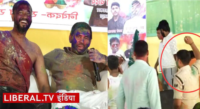 बिहार के पूर्व मुख्यमंत्री लालू यादव और राबड़ी देवी के बड़े बेटे तेज प्रताप यादव एक बार फिर सुर्खियों में हैं। होली के एक कार्यक्रम के दौरान वह पूरे सुरूर में नजर आए। वे महाराज स्टाइल में मंच पर लगे दूधिया सफेद सोफे पर बैठे हुए थे। सामने टेबल पर दो प्लेट में अबीर था। कुछ लडक़े आते जा रहे थे और तेज प्रताप के पैर पर अबीर चढ़ाते जा रहे थे। इसी दौरान तेज प्रताप ने कहा कि ऐ सिपाही, ऐ दीपक…सुनिए। एक गाना बजाएंगे उस पर तुमको ठुमका लगाना है। आज नहीं ठुमका लगाओगे तो सस्पेंड कर दिए जाओगे। बुरा मत मानो होली है। उनकी टोली के लडक़े मजाकिया अंदाज में हंसने लगते हैं। इसके बाद दीपक ने उनकी यह फरमाइश पूरी कर दी जिसके बाद उन पर यह कार्रवाई हुई है।