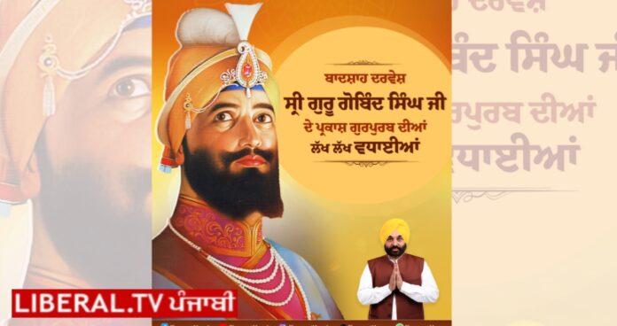 ਮੁੱਖ ਮੰਤਰੀ ਮਾਨ ਨੇ ਸ੍ਰੀ ਗੁਰੂ ਗੋਬਿੰਦ ਸਿੰਘ ਜੀ ਦੇ ਪ੍ਰਕਾਸ਼ ਪੁਰਬ ਦੀਆਂ ਦਿੱਤੀਆਂ ਵਧਾਈਆਂ