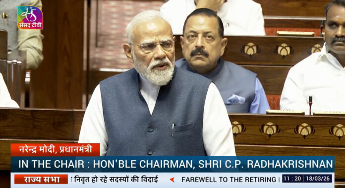 18 मार्च 2026 को राज्यसभा के 37 सदस्यों के कार्यकाल की समाप्ति पर विदाई देते हुए प्रधानमंत्री नरेंद्र मोदी ने सदन को संबोधित किया। पीएम मोदी ने अपने भाषण में अनुभव की महत्ता पर जोर दिया और राजनीति के प्रति एक सकारात्मक दृष्टिकोण साझा किया।