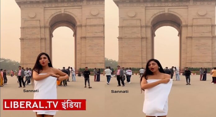 टॉवल डालकर इंडिया गेट पहुंची मॉडल,फिर जो हुआ…देखे वीडियो