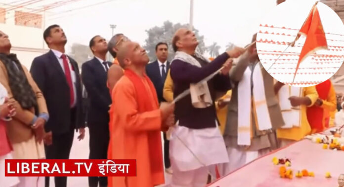अन्नपूर्णा मंदिर के शिखर पर धर्म ध्वजा फहराई, राजनाथ सिंह और सीएम योगी ने किया पूजन